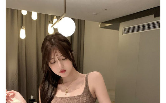 Spaghetti Dress Mini Knit Slim-Fit Strap