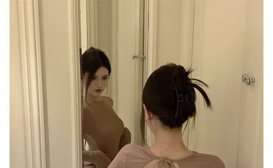 Mini Open Back Neck Sheath Dress Long-Sleeve Crew Plain