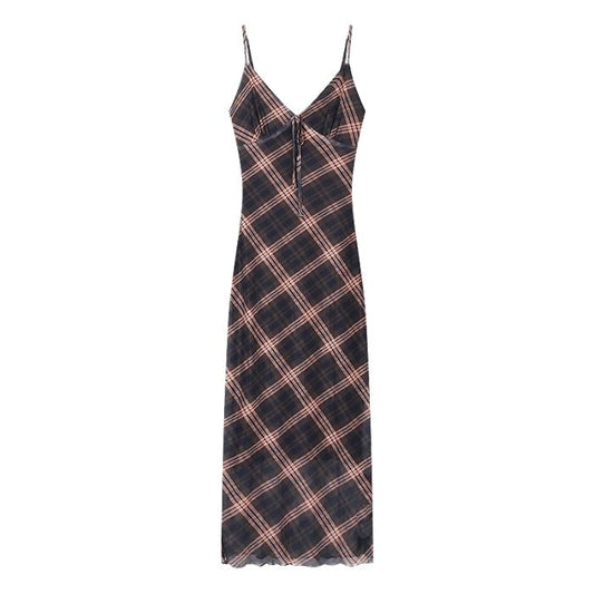 Dress Plaid Sleeveless V-Neck Maxi Print