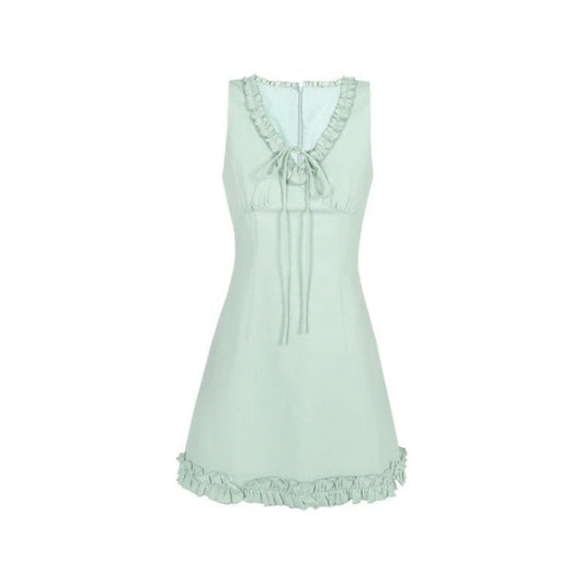 Dress Mini Sleeveless V-neck Trim Ruffle