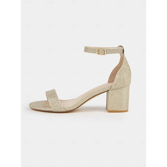 Stylish Women's with Glitter Block Sandals Ankle Heel Gold