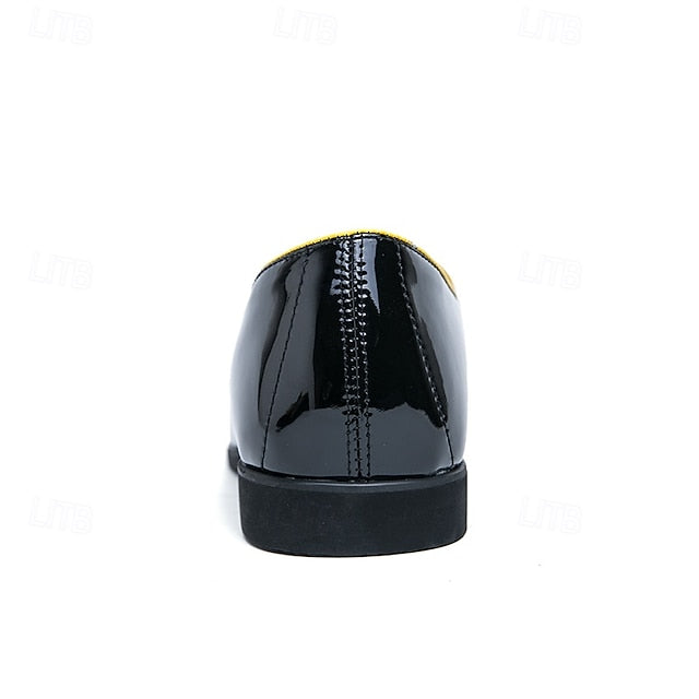 Men's Trim Yellow Faux Black Loafers Patent with Leather