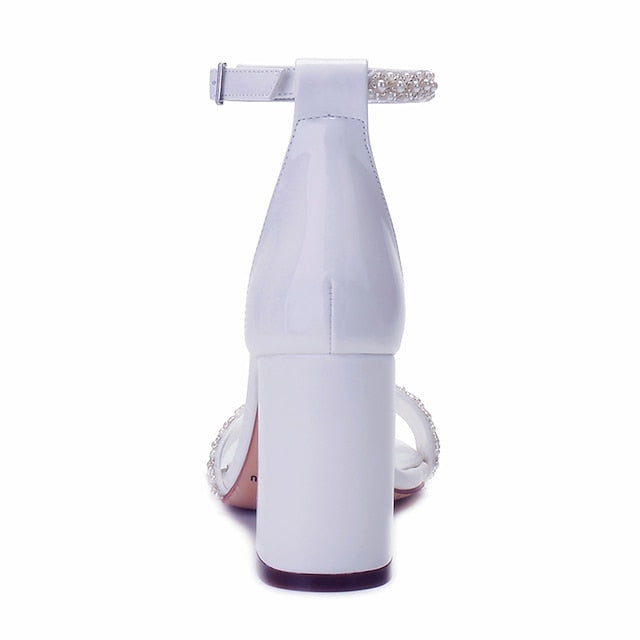 Women's Ivory White Pearl Embellished Ankle Strap Block