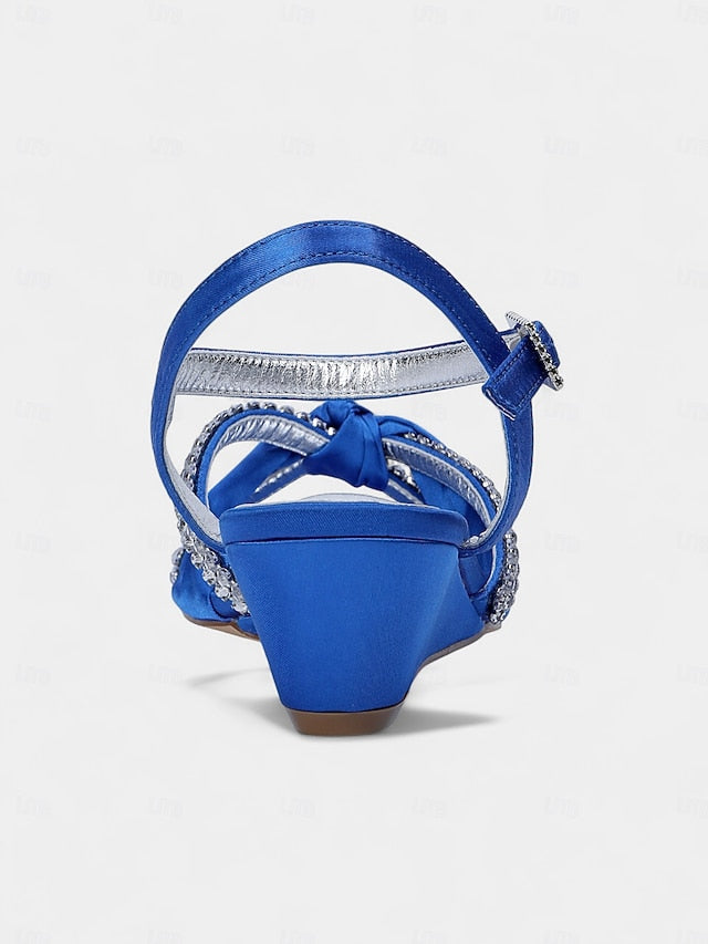 Satin Rhinestone Green - Women's Knot Wedge Sandals
