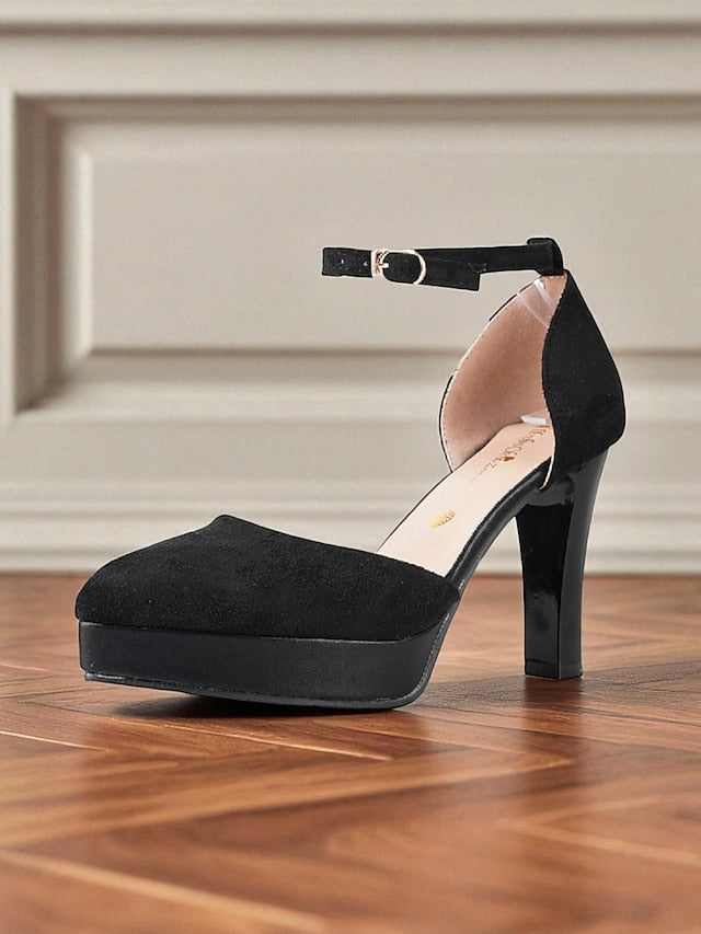 Heel Suede Women's Strap Ankle High Platform Burgundy 1950s