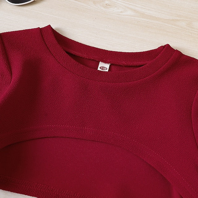 Pieces Kids 2 Set Girls' Dress Block Color Long Suits