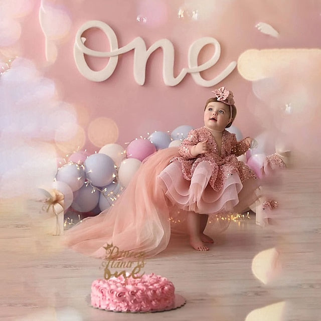 Sleeve Girls' Party Kids Sequin Long Performance Dress
