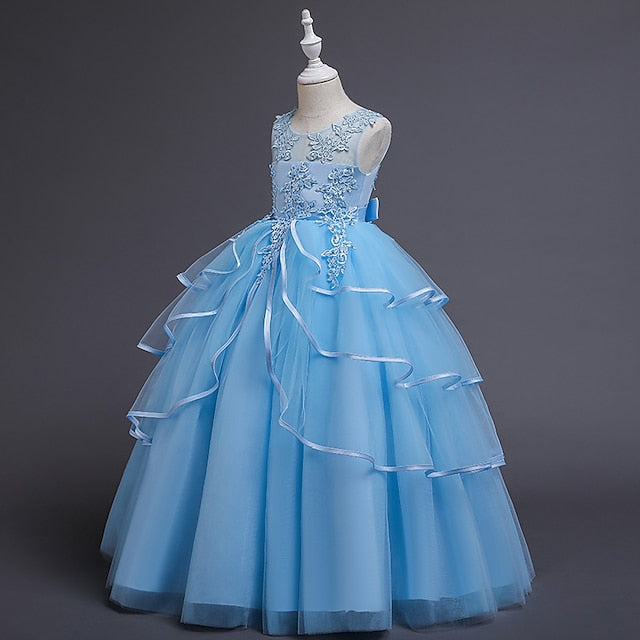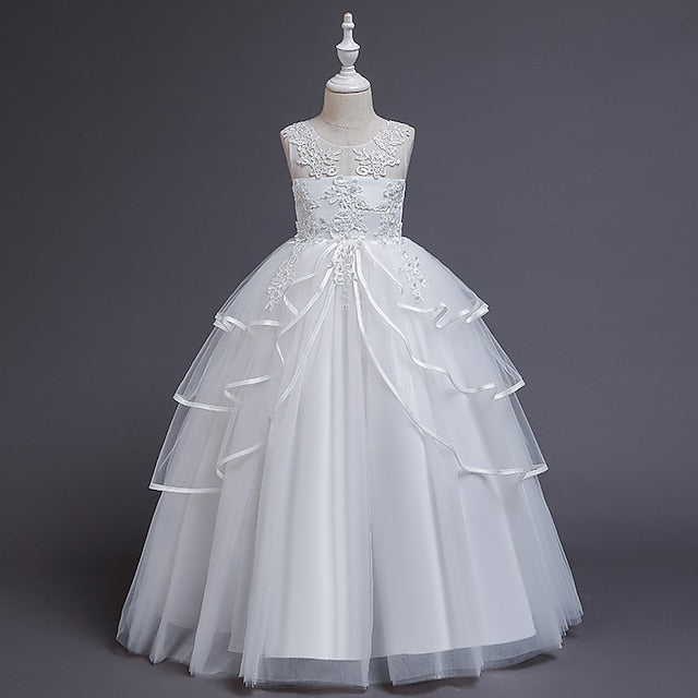 Sleeveless Color Kids Party Girls' Solid Dress