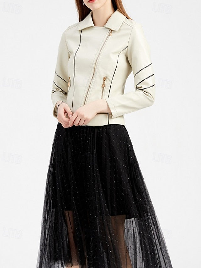 Zipper Leather Faux Women's Jacket Pocket Comfortable